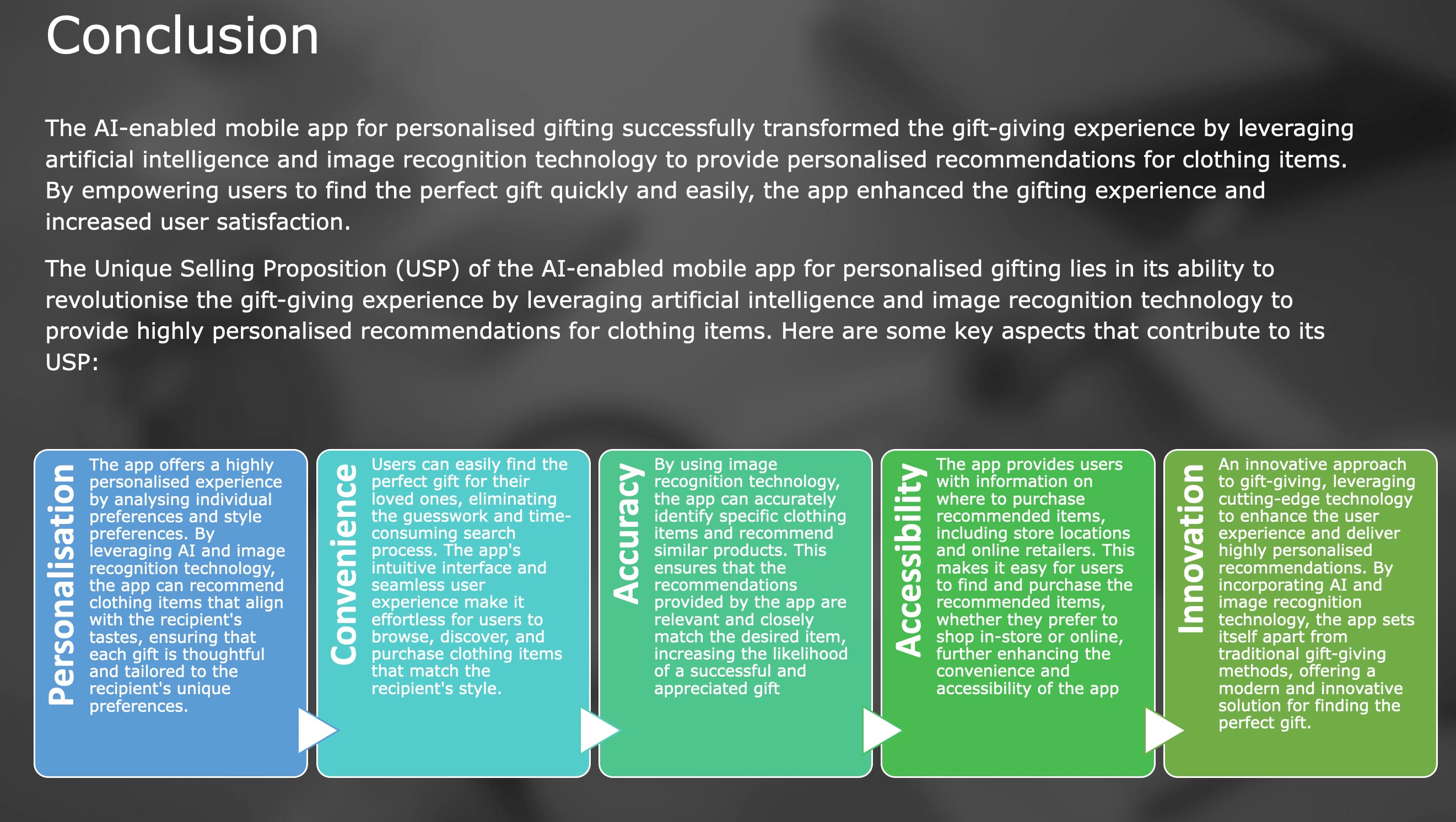 One of the key innovations was the image recognition engine, which allowed users to snap a picture or upload an image of a clothing item they liked. The AI would then match and suggest similar items—personalizing the gifting experience in a way traditional recommendation engines couldn't. In addition, shoppers could discover styles for themselves, while retailers gained a new channel for product visibility and conversion.